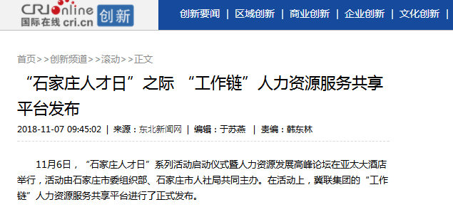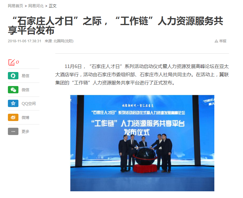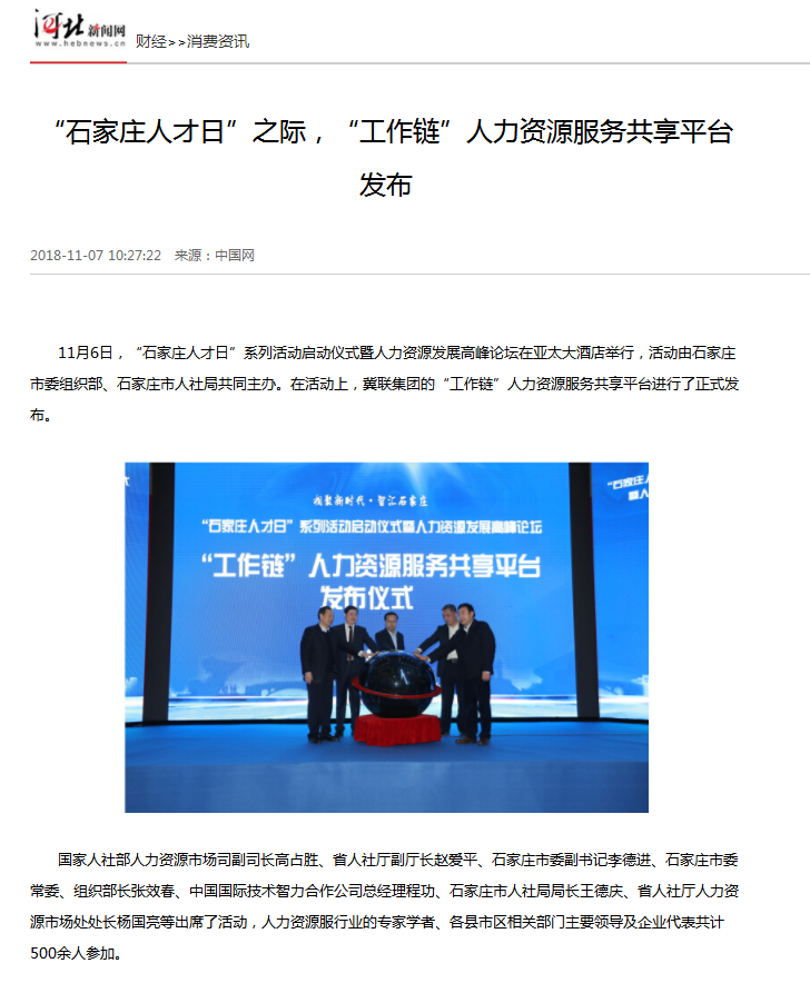 “石家莊人才日”之際,“工作鏈”人力資源服務共享平臺發布